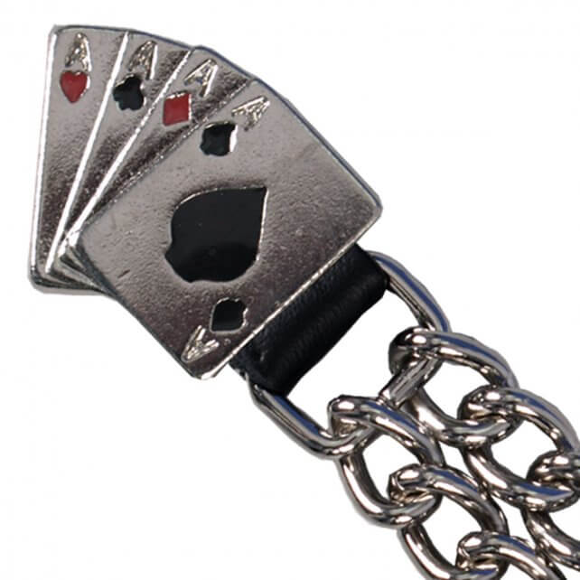 5" chain Ace of Spades Extender. Simply clips over & under your waistcoat studs..great if you're putting on a bit of weight!