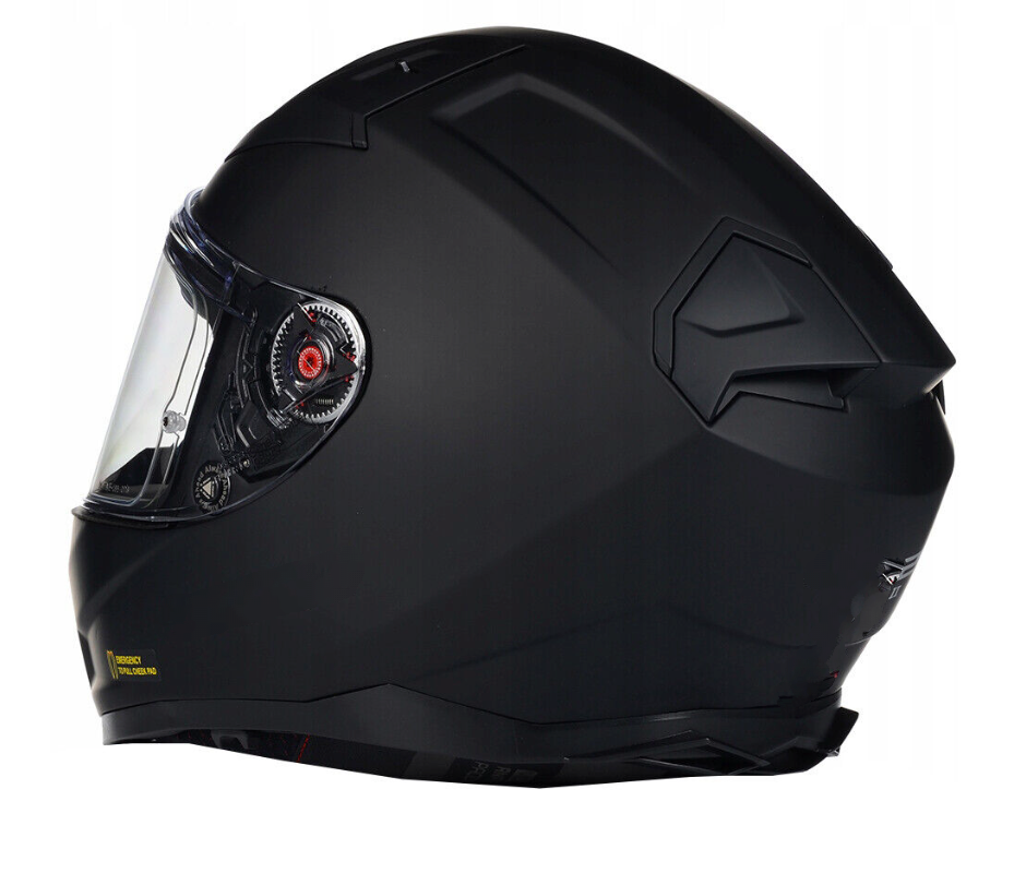 - "Emergency release system", i.e. the cheek pads can be easily removed by the first aider in the event of an accident, and then the helmet can be gently removed afterwards