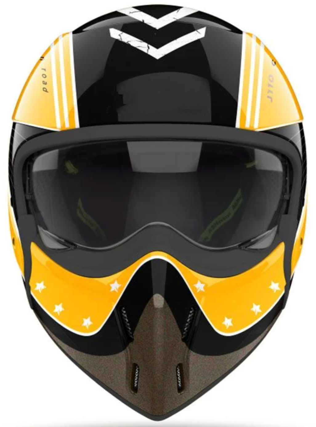 This street fighter-inspired helmet comes with a removable mask with a wide-vision, that manually operates with pull tabs located on each side of the helmet.