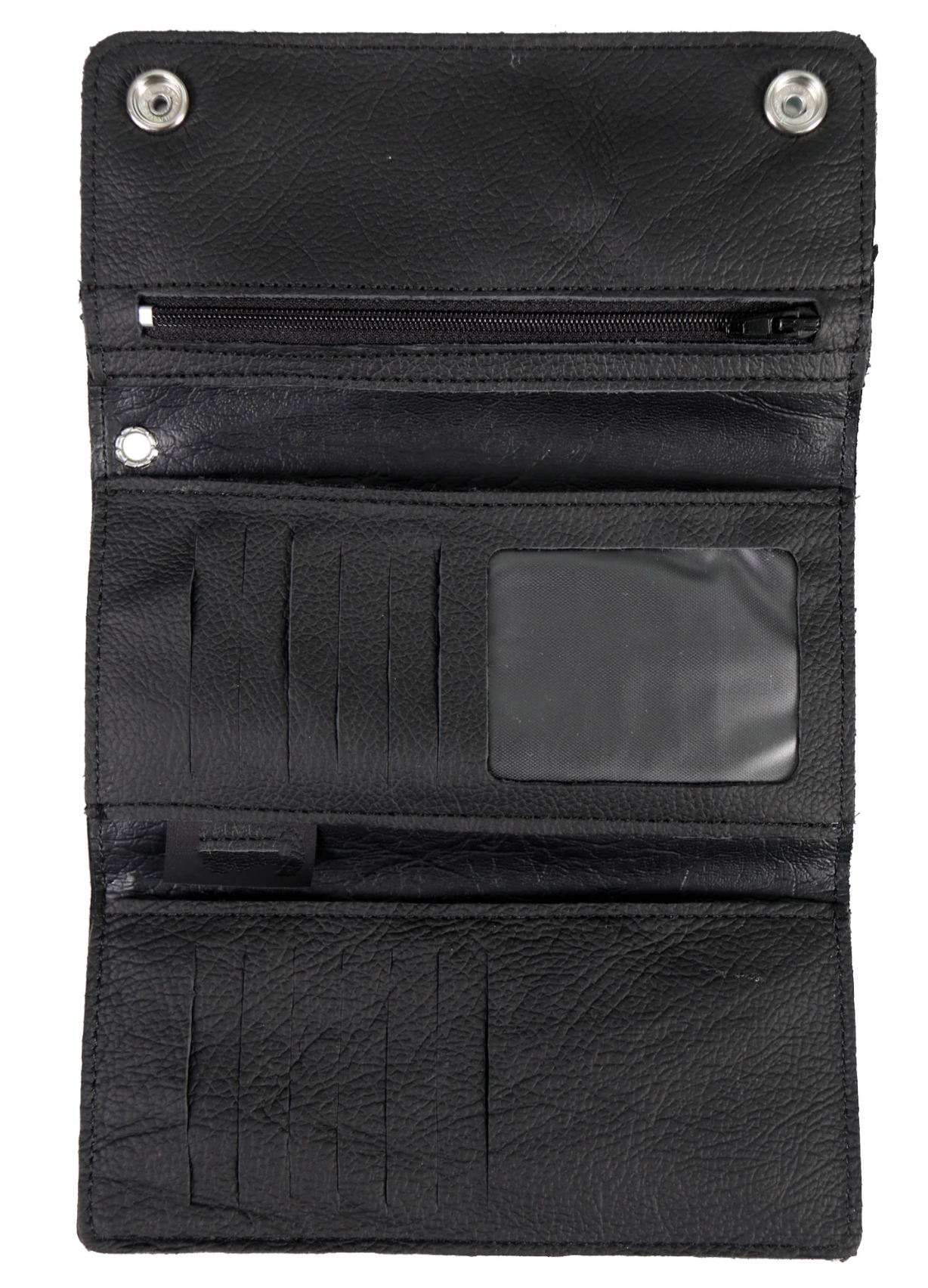 Measuring in at 7" x 3.5" folded and opening out to 7" x 10.5", this leather wallet has ample room for notes & credit cards.