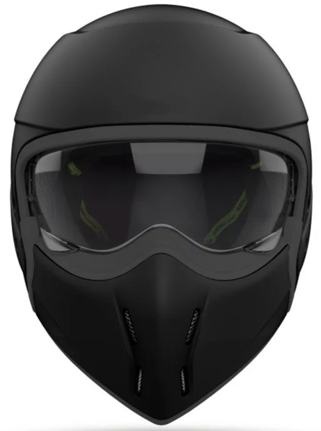 This street fighter-inspired helmet comes with a removable mask with a wide-vision, that manually operates with pull tabs located on each side of the helmet.